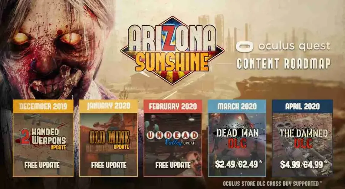 We still have a few content drops scheduled for Arizona Sunshine on Oculus Quest, for example, the Old Mine update, adding a new Horde mode map to the game. For a reminder of what else is to come, check out the content roadmap.