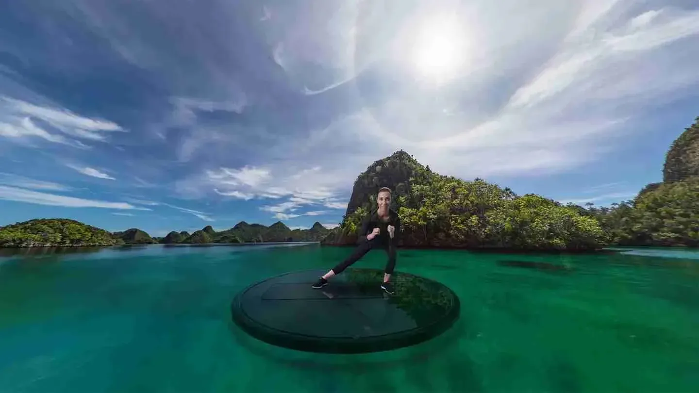 When I first arrive in Supernatural, I am greeted by an enthusiastic woman who assures me that she'll be with me every step of the way. The surroundings are gorgeous. My first setting appears to be rocky mountains in the UK. The trainer walks me through a simple calibration process to assess my height, lunge, and squat. Once that's done, I'm taken through a short training that explains the basic workout, and then another trainer steps in to introduce me to some advanced 360 functionality for a total body workout.