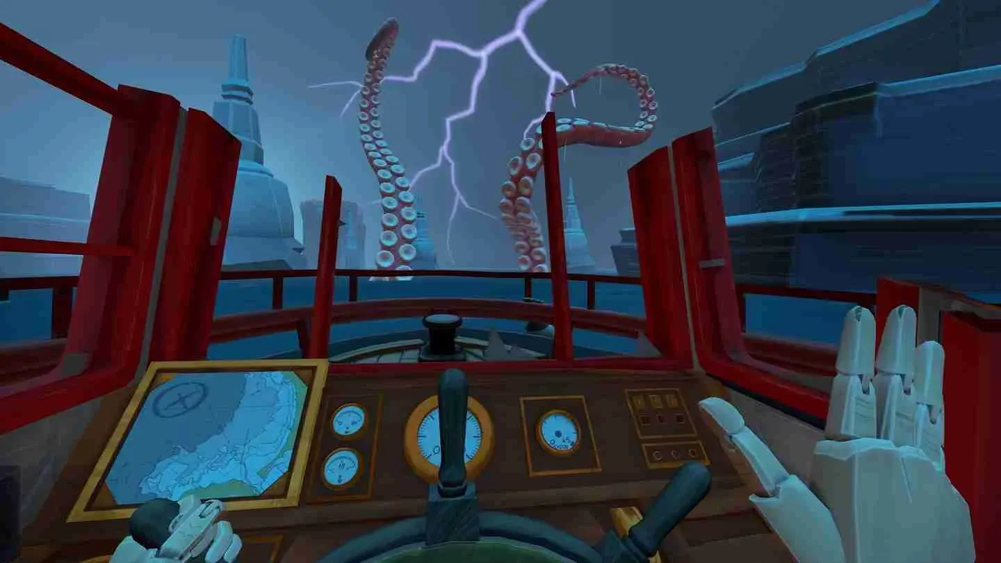 There's great fun to be had controlling Bob's body parts. No, not like that you filthy animals. At its best, such as when you're sending one of Bob's hands scurrying into an air vent to retrieve a vital puzzle piece, it can feel like the Addams Family game we all want and deserve. Some controls can take some patience and don't always feel quite as intuitive or well-honed as they might. Rotating the detached hands with the controllers can often feel a bit of an unpleasant strain on the wrists; both of us who've played it here in the 6DoF fortress think that this particular aspect of the controls could use some work.