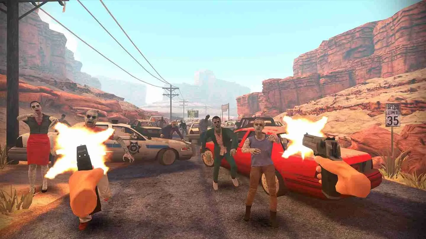 The gameplay in Arizona Sunshine serves the straightforward narrative perfectly, and this is backed up by the pivotal central performance by Sky Soleil as the player. This gives the game its identity. The cheery everyman could be just another generic dudebro, but there's real depth here. He cheerily refers to the zombies as 'Freds' and 'Freddies', talking to them as if they're friends as he guns them down. He's a guy who's seen a lot by the time we join him in the game, but he isn't a standard ex-military grunt. As the game goes on, his cheeriness evaporates, and it's clear that his joviality has been masking clawing loneliness and despair at his situation. The voice work is excellent in a way that belies the simplicity of the narrative and sells the setting more than any number of contrived plot twists or a vapid supporting cast, could have done.
