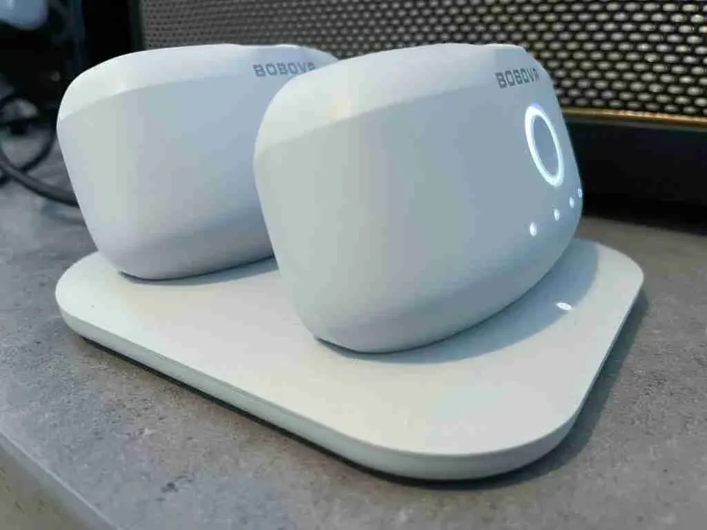 The Bobo M2 Plus Twin-Battery Combo and Magnetic Charging Dock came, as you can surely tell from the self-explanatory name with the M2 Plus halo-strap, two magnetically attachable batteries, and a slick low-profile charger that’s capable of charging both batteries simultaneously. It even came with some double-sided adhesive so that you can stick the charger to whatever surface you choose, so that you don’t have to hold it down with your other hand while you detach batteries from it.