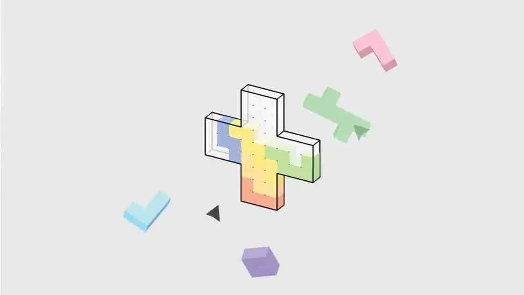 Cubism is a game with industrial aesthetics, featuring simple mechanics and great spatial puzzles. There are ten packs of puzzles, with six puzzles per pack, at various difficulties. In each puzzle, you're presented with a three-dimensional wireframe of the shape you need to create, and the colorful solid blocks you're tasked to put together into that shape.