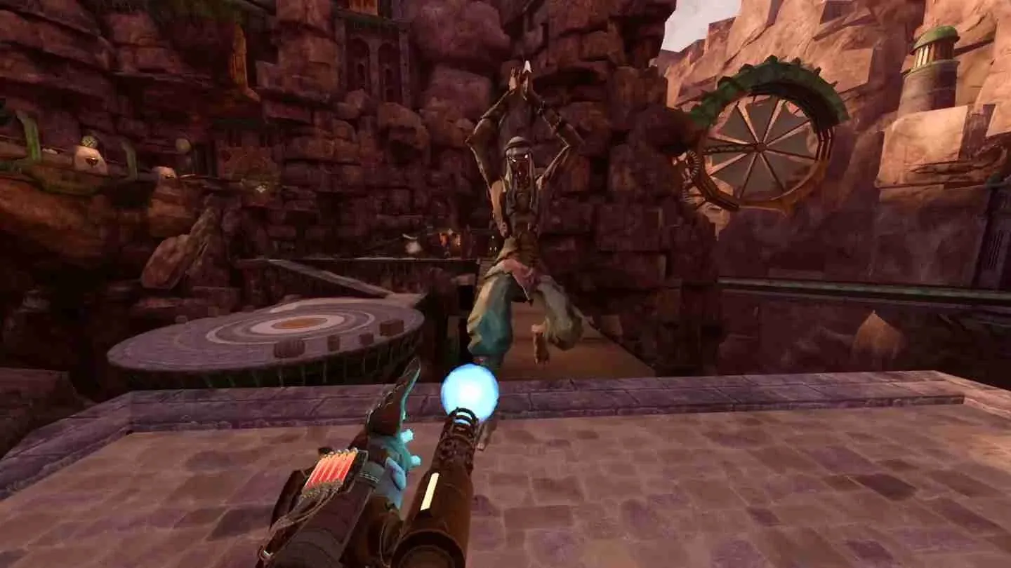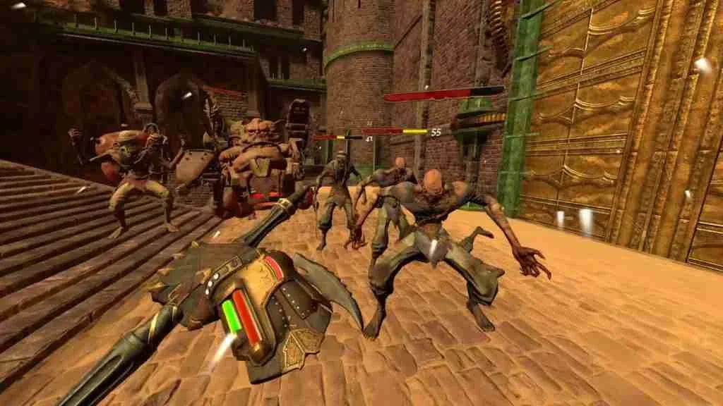 The Doom-like pacing of the game keeps the combat in a constant state of flux. Players trying to win pitched battles with sheer swordsmanship are in for a rude awakening as the game requires an almost perpetual, run-and-gun style approach to survive.