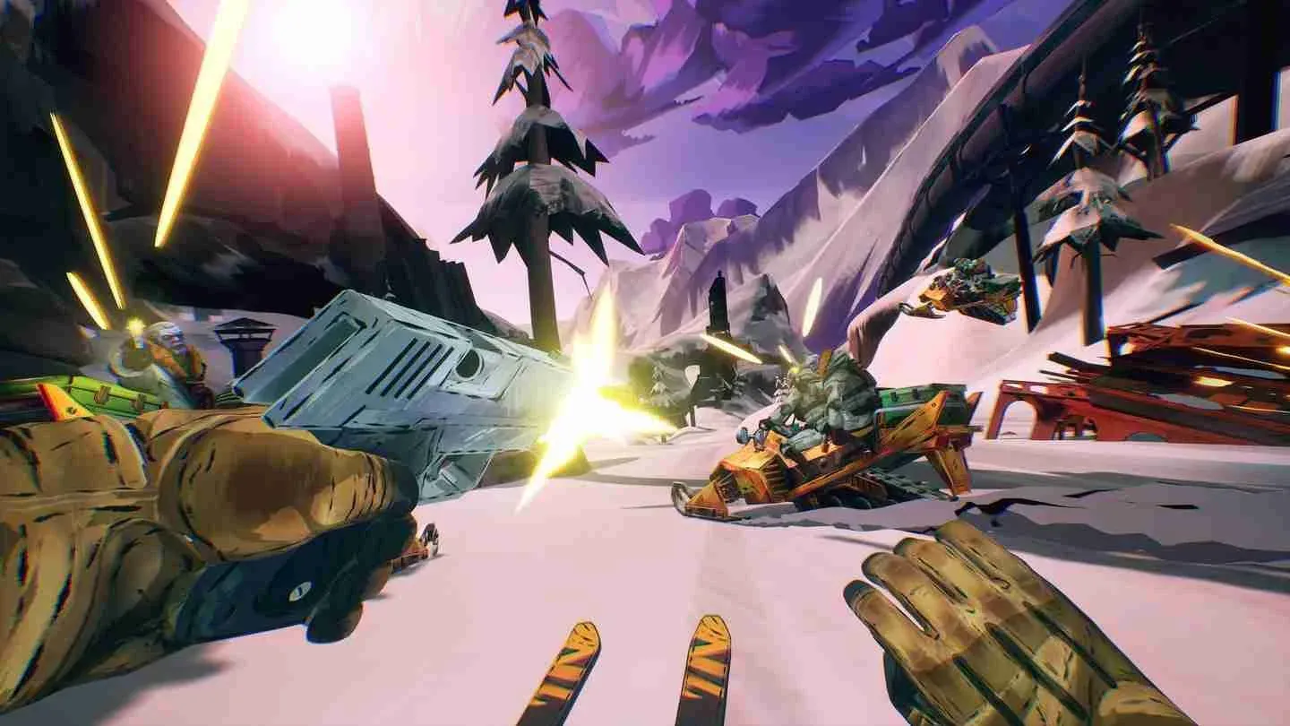 The story unfolds over a 3 to 3.5-hour campaign, taking players through a series of 8 fairly linear levels. The game’s structure alternates between intense action set pieces, thrilling skiing sequences, and climbing sections that, while serviceable, don’t add much to the overall experience. The action sequences, particularly those where players ski down slopes while shooting enemies on snowmobiles, are exhilarating at first but quickly lose their novelty.