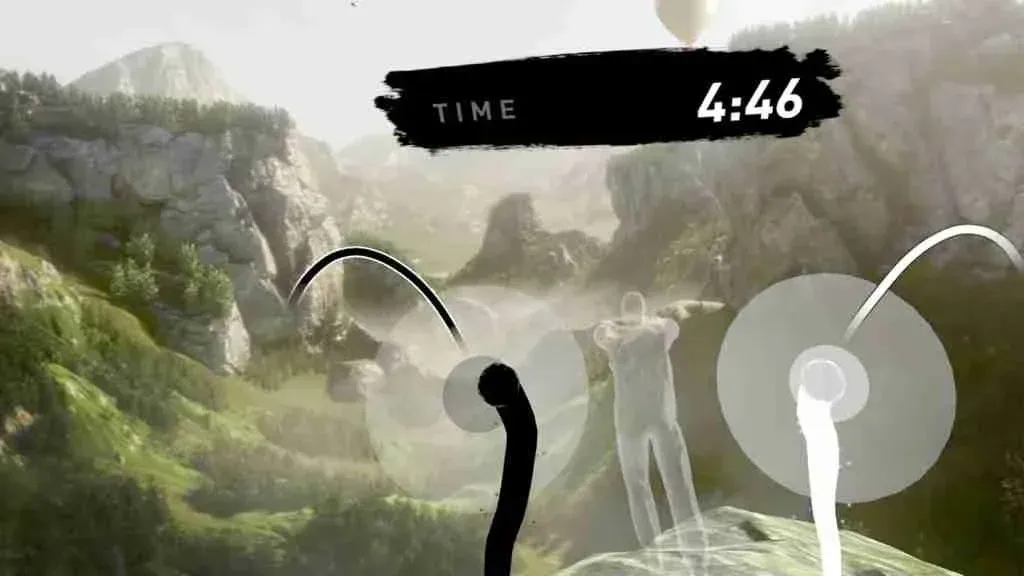 Your hands are represented by two orbs. Your left hand is a black orb, and your right hand is a white orb. Your goal is to keep these orbs in the center of their circles as they move. There are thin black and white tracks that the circles will follow, so you have an idea of what to expect.