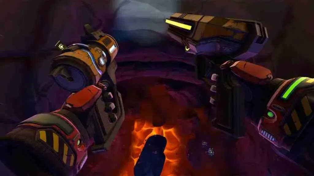 Graphically, Into Black is an absolute stunner. The stylized visuals work wonders in VR, especially when combined with the game’s fantastic lighting effects. One of the most memorable moments comes early on, when you fire a flare into a cavern and watch it illuminate the alien landscape in real time. It’s breathtaking. The game’s biomes are varied—magma chambers, ancient alien ruins, and underwater caverns all offer a sense of discovery that keeps things feeling fresh, at least for a while.