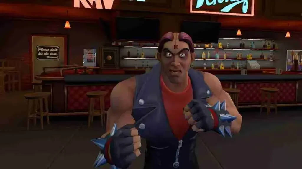 The gameplay in Path of the Warrior is relatively straightforward. You can punch people using either hand. Most objects can be picked up and used or thrown against your enemies, and you can pile on some environmental damage by grabbing the bad guys and throwing them towards things like ovens, windows, etc. You can also kick opponents, although this is controlled by button presses on the Touch controllers. I'm of two minds about the inclusion of this ability. It adds to the variety and allows punch-kick combos, but mapping the kicking to a button feels antithetical to the immersion that motion controls otherwise create.