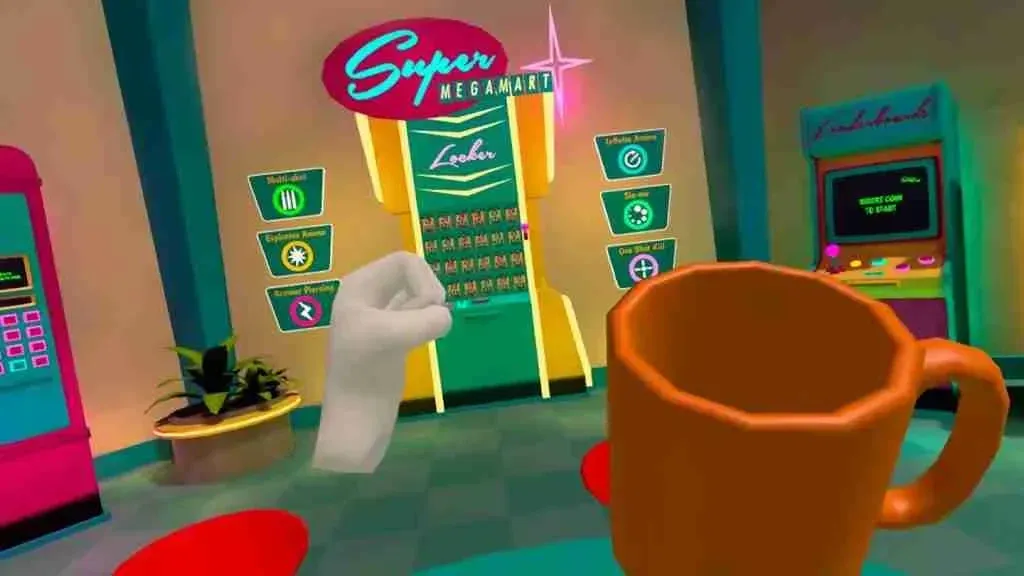 Set in a classically-retro shopping complex, Shooty Fruity's graphics pay homage to simpler times and early cartoons. Yet, they're clear, and items and fruits can be differentiated at a distance. Shooty Fruity is so full of pop culture that it feels like being on a set.