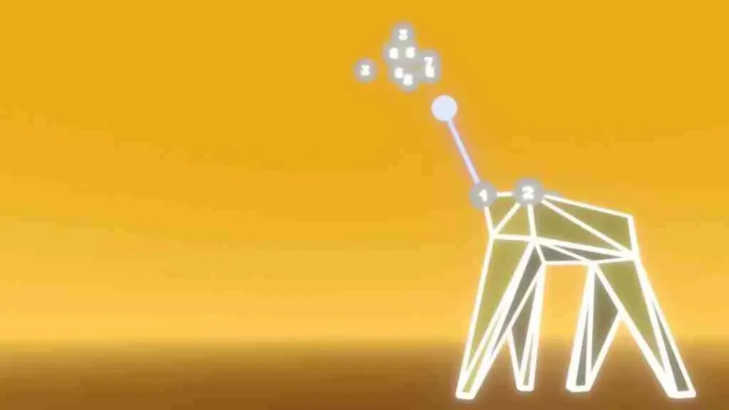 You build the model, one triangle at a time. When complete, the animal, in all its low-polygon glory, floats off into a big shimmering portal that magically appears to whisk it away.