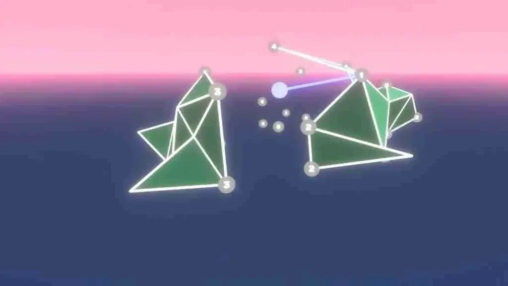 There are no extra trappings beyond the in-game elements; everything takes place in an infinite, wide-open space where even the controllers in your hands are reduced to simple spheres. There is just you, the puzzle and softly chiming piano chords that greet a successfully completed triangle.