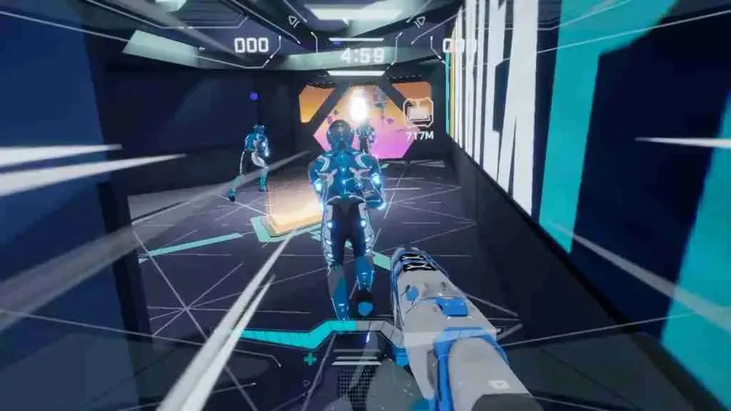Once you don your helmet and enter the game, things, unfortunately, do not improve. The first thing that any player will notice is that your off-hand is a pointless mass of pixels that may as well not be there. While operating within the usual range of motion required for aiming, the off-hand automatically locks to the front of the gun. This forces you to either follow suit in real life or completely give up on the notion of having an immersive experience.