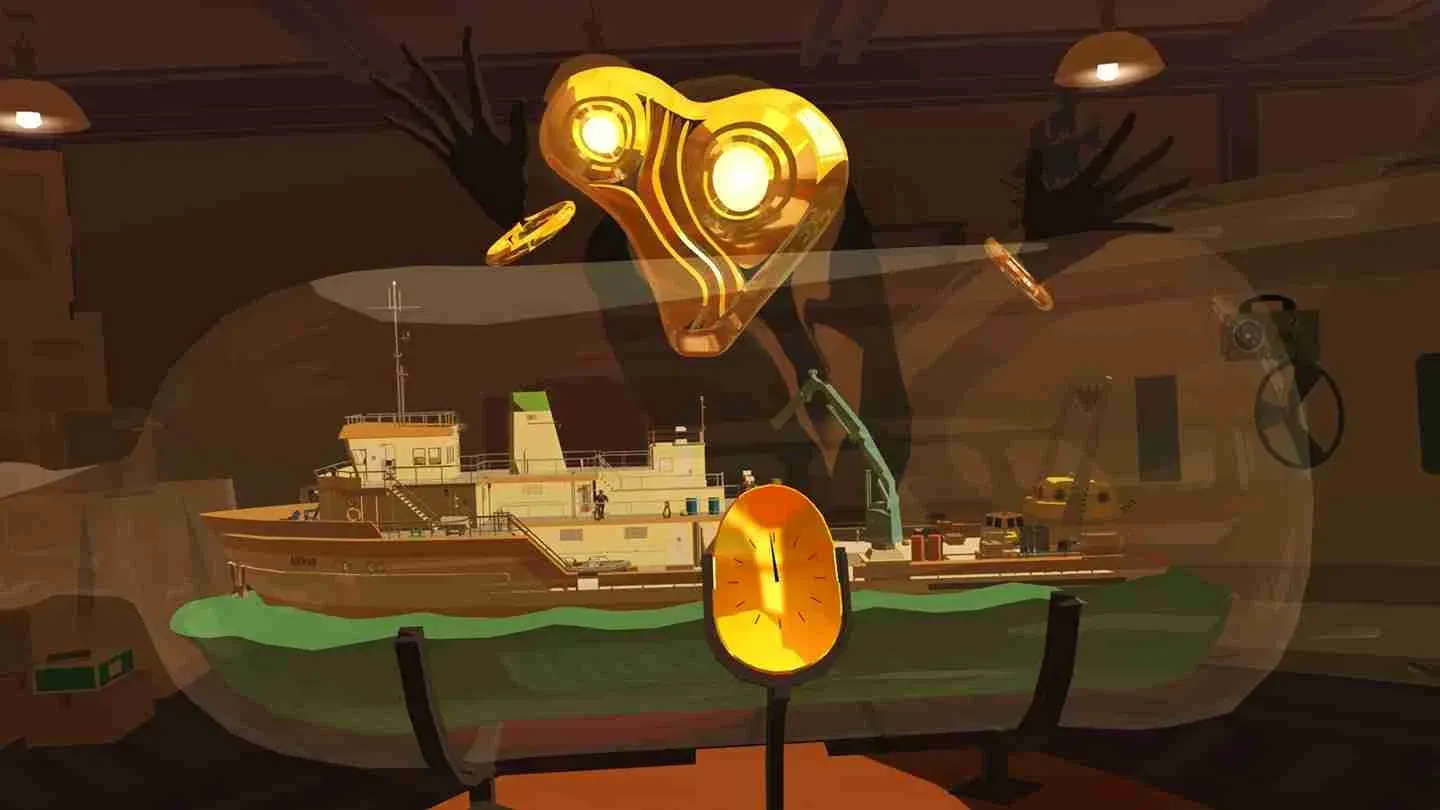 Gerald is a dolphin, and if you're familiar with the work of Douglas Adams, you shouldn't be too surprised at how important he turns out to be. All of the characters have their own stories, and you can choose who to focus on by following them around. With your mask on, you're on the ship, experiencing the events occurring on it in real-time. Your mask is, apart from your hands, your most valuable tool.