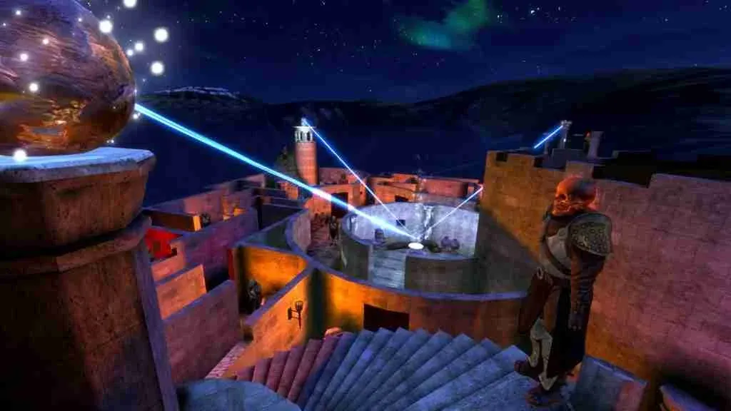 The one scene you can travel to that actually contains some worthwhile activity is the game’s labyrinth. Hinting at the possibility of an actual game, and not just an interactive experience, the labyrinth arms you with swords, fireballs, or crossbows, then sends you on a mini-mission to light three orbs and unlock a new magical artifact.