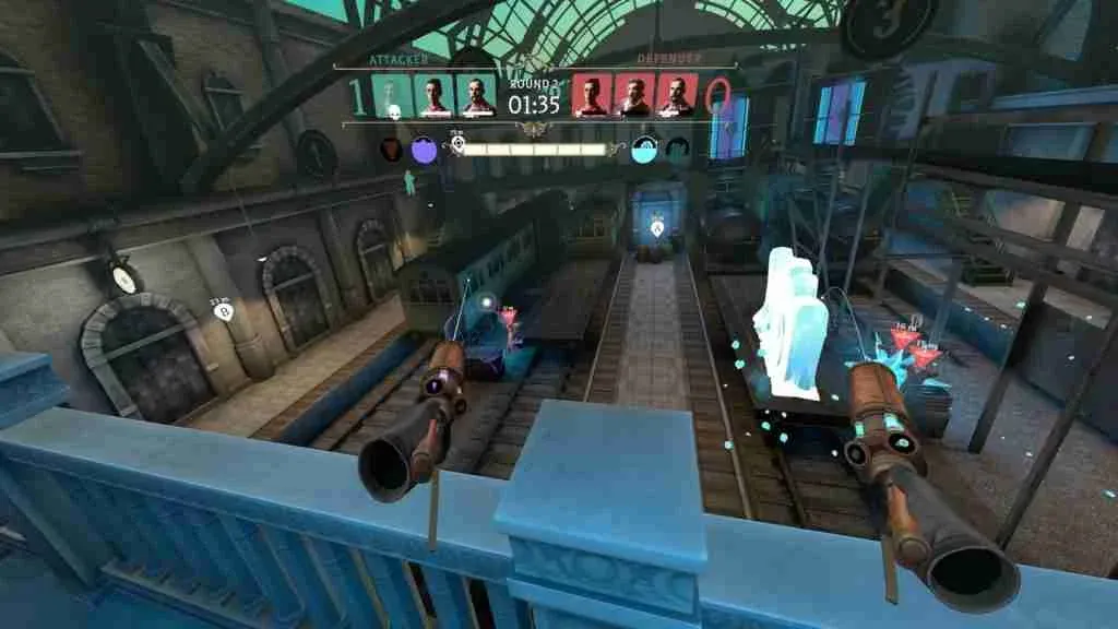 Once you have selected characters and spell loadouts, combatants enter the maps and set about doing battle. Teams take turns switching between offence/defence in a game mode that sees the offence trying to take a magical bomb (known as the Omega device) to one of two docking stations on the map. Once there, the team must engage the bomb and hold off enemy attempts to disarm it. If you're playing defence, you try to stop your opponents and disarm the bomb to take home the win.